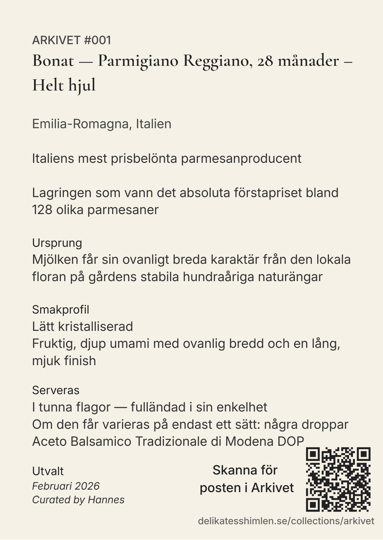Spara korten framme som ett litet smakarkiv hemma, bläddra med vänner och skanna när du vill läsa mer eller beställa igen.